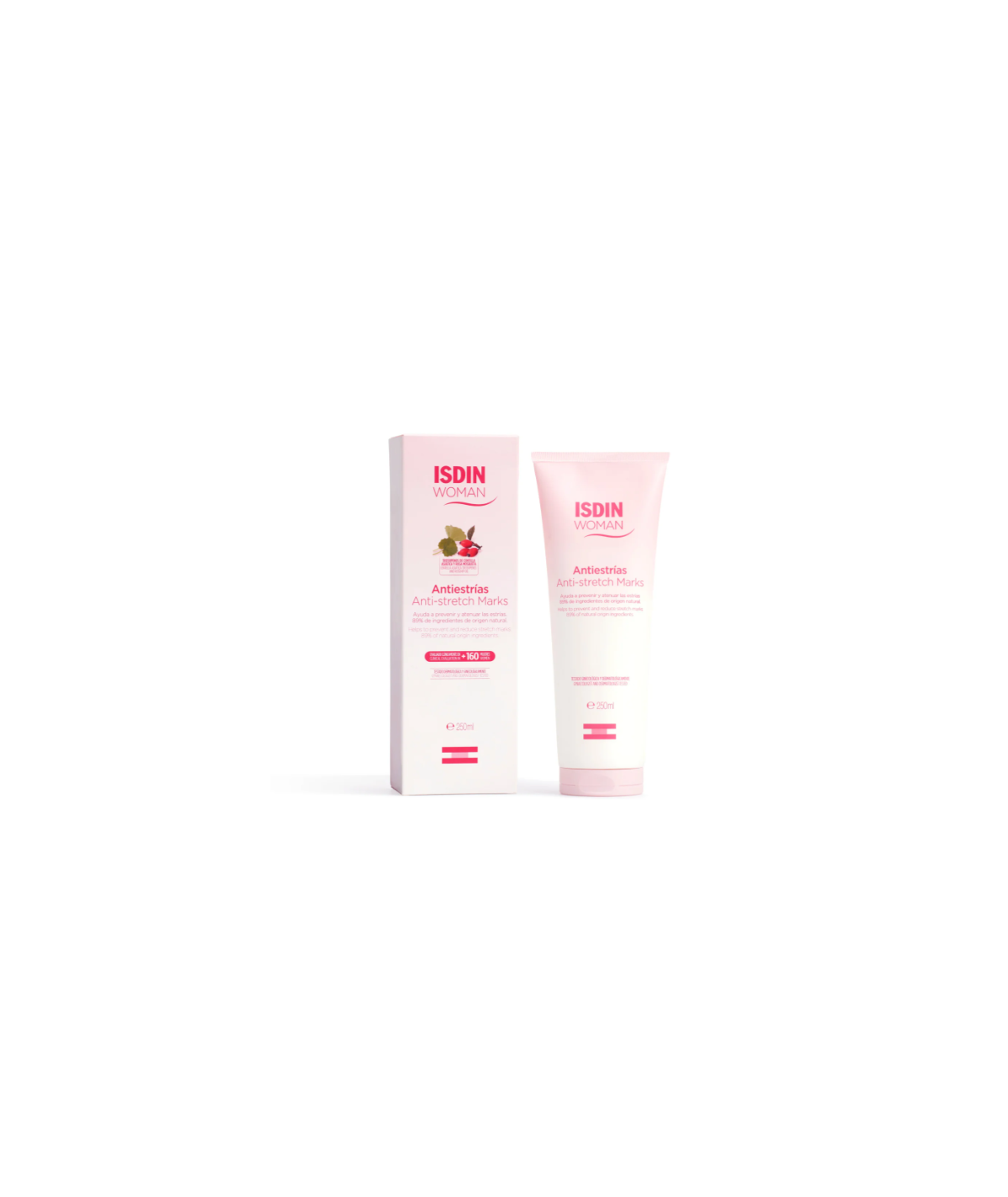 ISDIN WOMAN ANTI STRETCH MARKS aide à prévenir et à diminuer les vergetures. Avec 89% d'ingrédients d'origine naturelle.