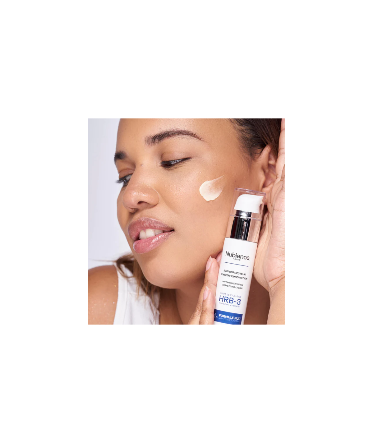 NUBIANCE HRB-3 Soin Correcteur d'Hyperpigmentation été développé spécifiquement pour atténuer les taches d’hyperpigmentation durant le sommeil. Sa texture nourrissante et hydratante enveloppe la peau d’un léger parfum. Sa formule riche en actifs dermatologiques repulpe et unifie la peau. Effet coup d’éclat garanti au réveil !