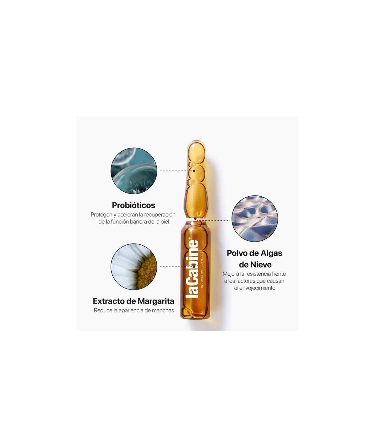 ✓ Une formule unique avec de la poudre d'algues des neiges, de la fleur de marguerite, des probiotiques, du Swertia Chirata, des algues marines rouges et de la carnosine.