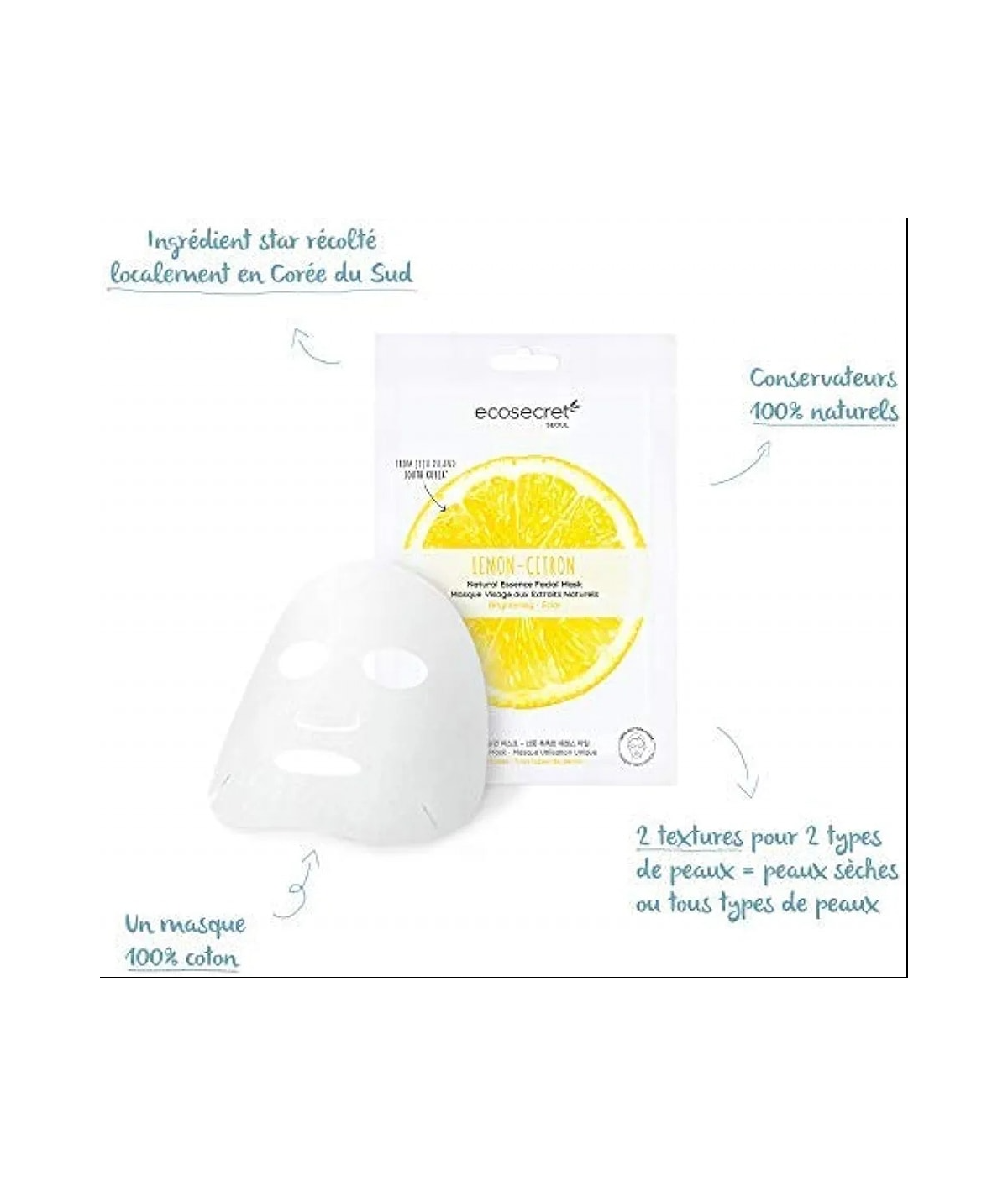 ecoscret seoul masque visage 100% coton à l'extrait naturel de citron de l'île de Jeju