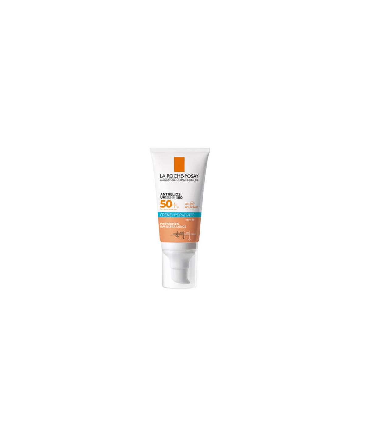La crème solaire peau sensible teintée Anthelios UVMUNE 400 à l'eau thermale de La Roche-Posay est un soin visage SPF50+