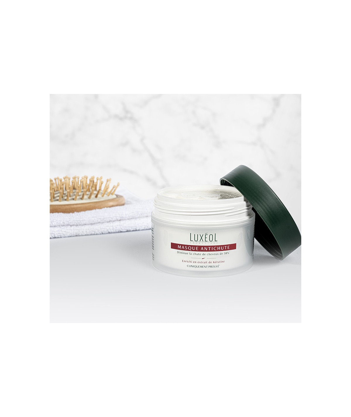 Présentation proposée sur notre pharmacie en ligne pour le masque antichute Luxéol : Pot de 200 ml