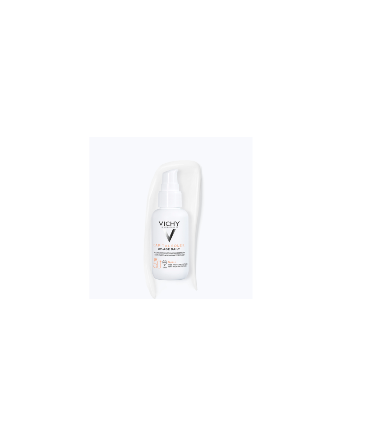 - UV Age Daily SPF50+ CAPITAL SOLEIL est une crème solaire visage SPF50+ qui offre une protection avancée contre les rayons UVA et UVB grâce à sa technologie multi-brevetée Netlock. Dotée d’actifs anti-rides et anti-taches (4 % de peptides et 2 % niacinamide), la formule de ce fluide solaire anti-âge est cliniquement prouvée sur les signes du photovieillissement, dont les taches pigmentaires, les rides et le manque de fermeté.