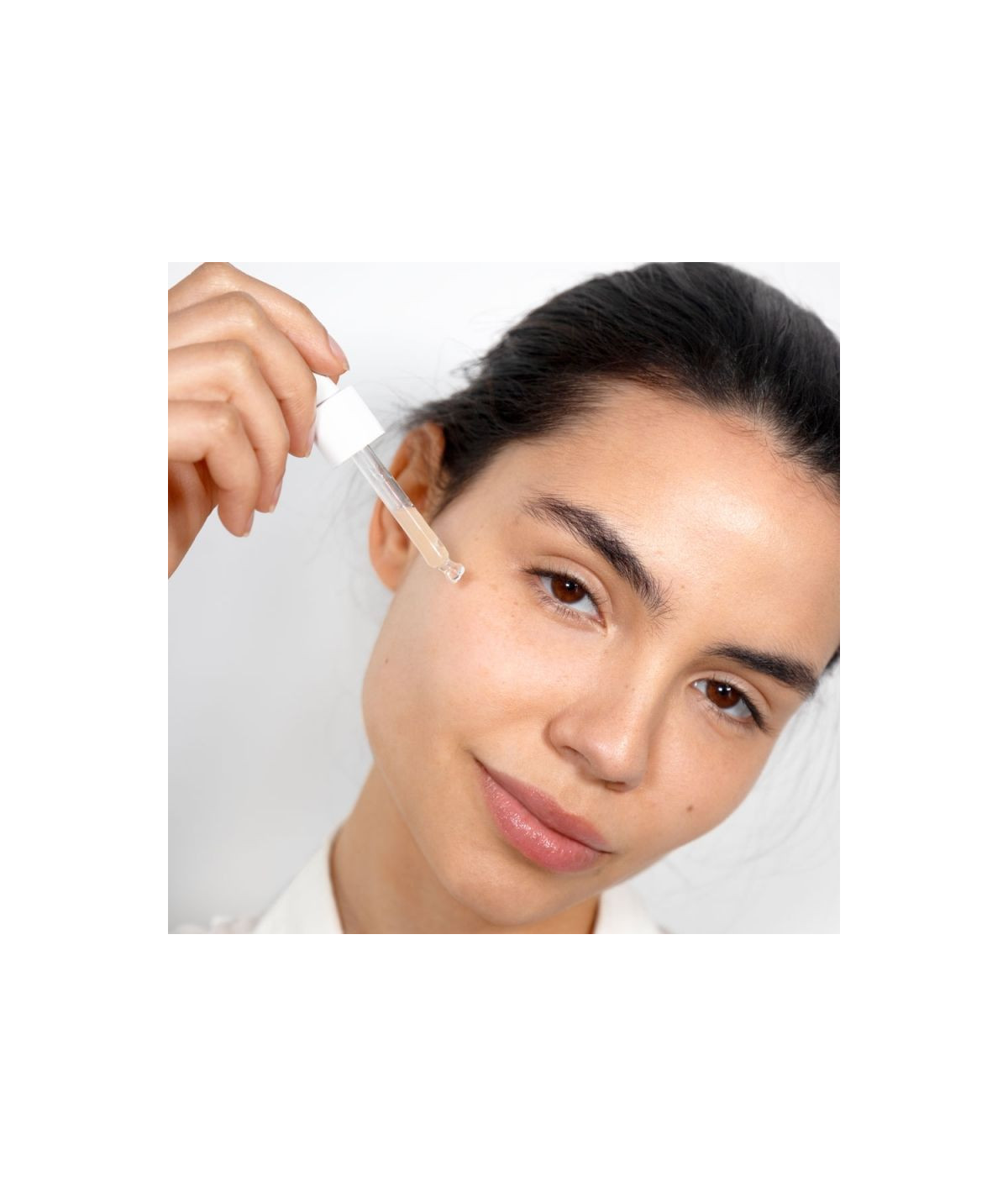 - Après avoir nettoyé soigneusement votre peau, déposez 2 à 5 gouttes de sérum sur le bout des doigts.