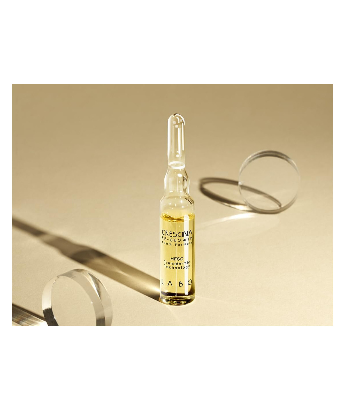 Crescina Transdermic Re-Growth HFSC est une préparation dermo-cosmétique topique pour aider à favoriser la croissance physiologique des cheveux, dont la formule bénéficie de la technologie Labo Transdermic : les molécules actives peuvent ainsi pénétrer dans le système capillaire non seulement par voie transfolliculaire (à travers l'ouverture folliculaire) mais aussi transdermiquement, c'est-à-dire par voie transdermique. à travers les couches de la peau du cuir chevelu. Grâce à leur faible poids moléculaire et à la présence d'amplificateurs, les actifs fonctionnels sont facilités dans leur pénétration et dans leurs performances. La formulation contient : le Complexe Re-Growth, le Complexe HFSC, le nouveau complexe booster de repousse de croissance, 3 amplificateurs.