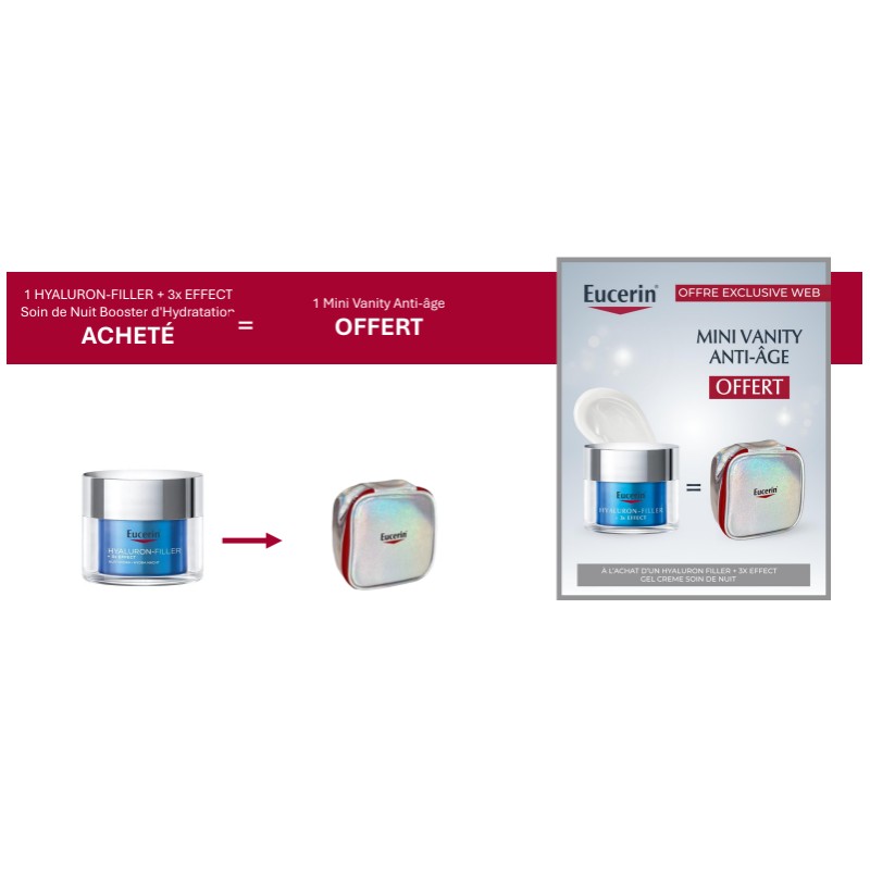 EUCERIN PACK hyaluron filler 3x effect gel creme soin de nuit booster d’hydratation 50ml + TROUSSE