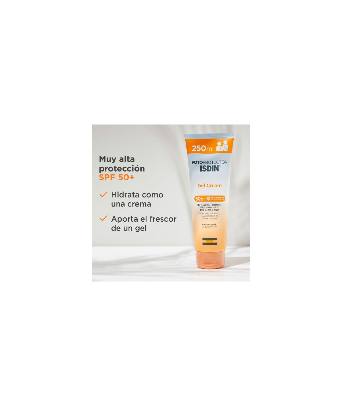 ISDIN Fotoprotector Gel Cream SPF 50 est une haute protection solaire idéale pour le corps. Grâce à sa texture gel crème innovante, il hydrate comme une crème et rafraîchit et pénètre rapidement dans la peau comment un gel.