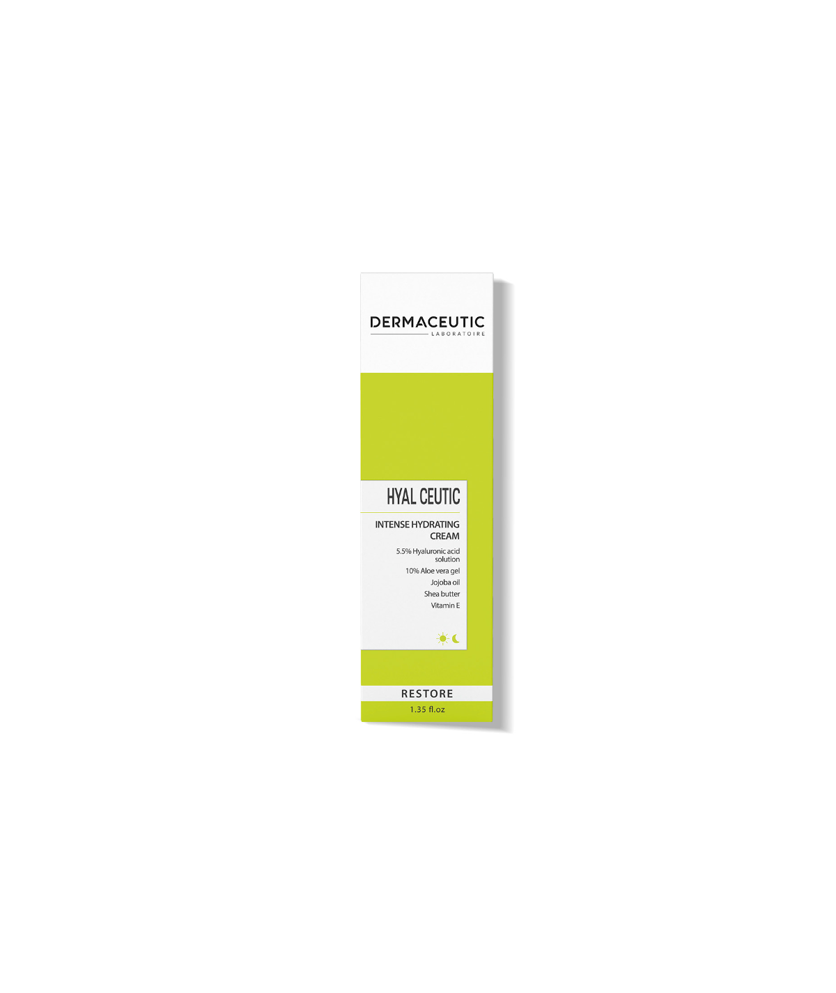 Hyal ceutic hydratant intense hydrate intensément et prévient le vieillissement prématuré de la peau.