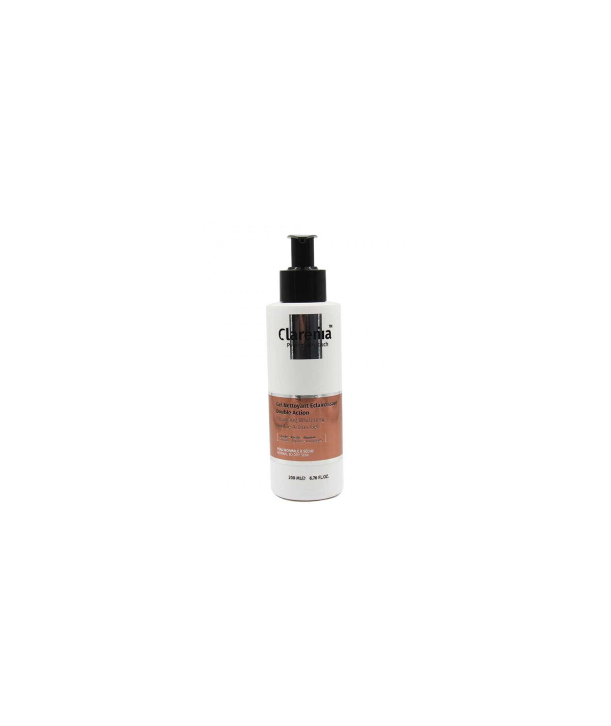 Clarenia gel nettoyant éclaircissant double action élimine les impuretés et l'excès de sébum et corrige les troubles de pigmentation.